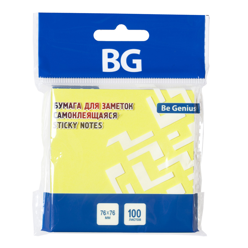 Самоклеящийся блок BG, 76*76мм, 100л, желтый пастельный, европодвес