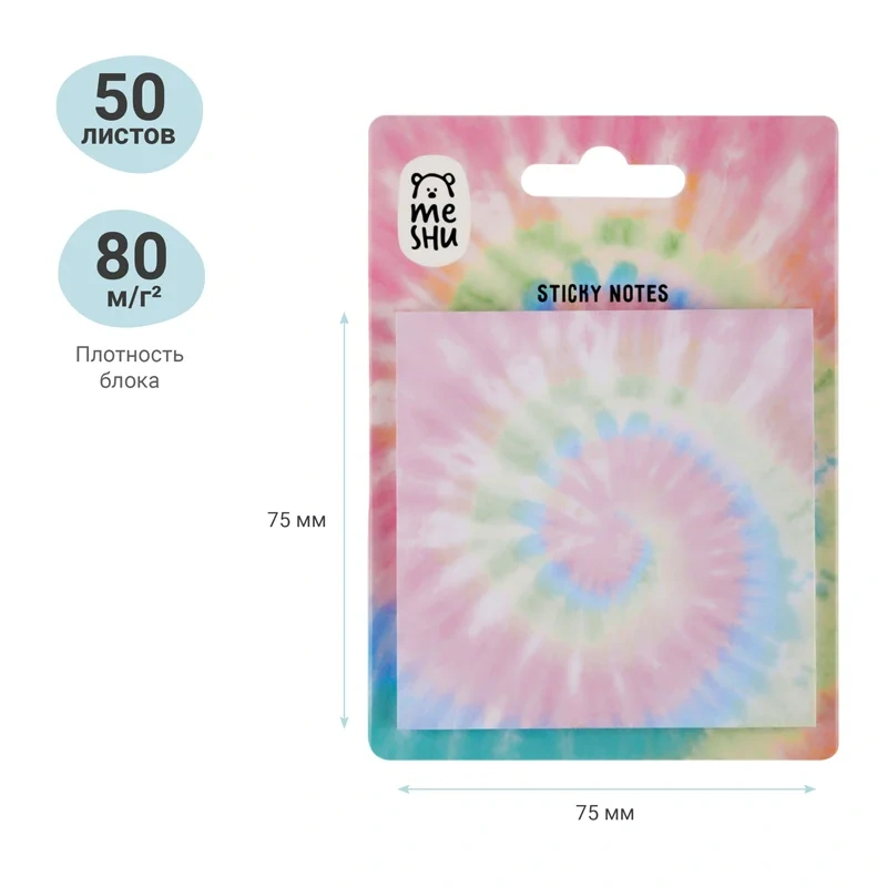 Самоклеящийся блок MESHU 'Candy color', 75*75мм, 50л., европодвес, Lovely