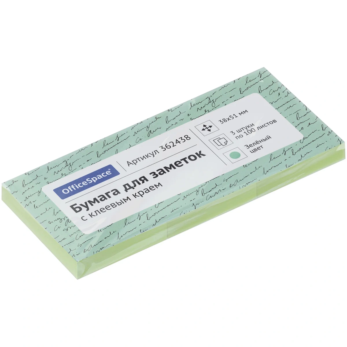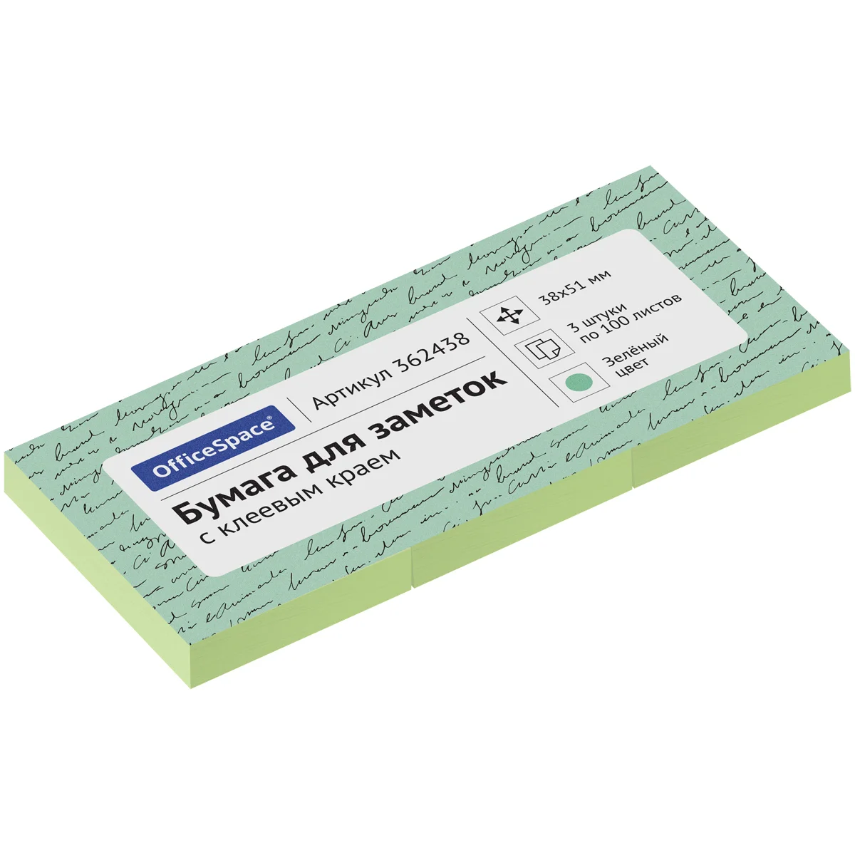 Самоклеящийся блок OfficeSpace, 38*51мм, 3 блока по 100л., зеленый