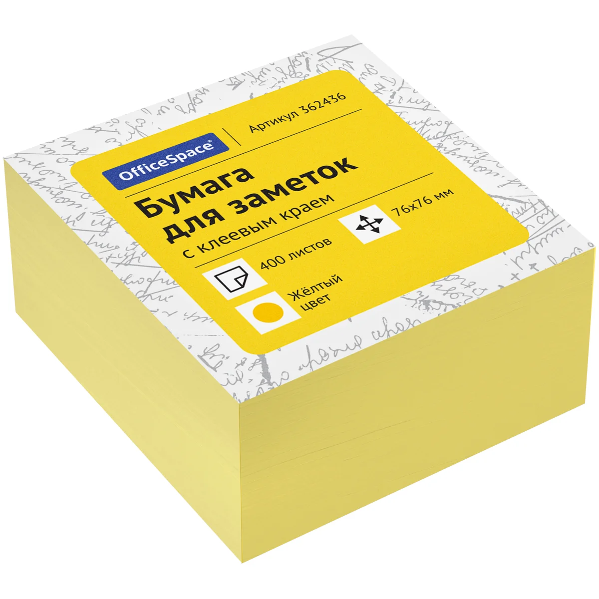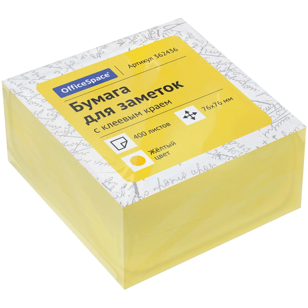 Самоклеящийся блок OfficeSpace, 76*76мм, 400л., пастельный желтый