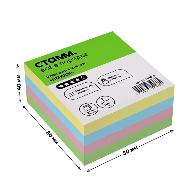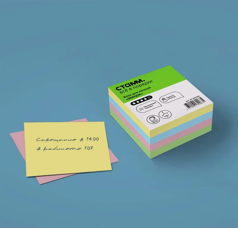 Бумага для заметок с клейким краем Post-it OPTIMA , коллекция 'Конфетти'. Уникальная продуктовая спецификация 22 блока по 100 листов размером 76 х 76 мм. Набор из 22 разноцветных блоков со стикерами без индивидуальной упаковки в оригинальном коробке-трансформере из плотного картона. Клеевая система Post-it с клейкостью — 23 Н/м обеспечивает крепление стикеров к бумаге любого типа, а также к большинству поверхностей и предметов. Наличие праймера гарантирует бесследное отклеивание и многократное переклеивание. Специальная бумага с плотностью 70 г/кв.м. имеет особое покрытие, благодаря которому листочки легко отделяются от блока, меньше закручиваются, на них можно делать надписи любыми пишущими принадлежностями в любом месте. Особых условий хранения не требует, сертификации не подлежит, срок годности не ограничен. Бумага на 100% произведена из восстанавливаемых лесов (Сертификаты SFI и PEFC). Сделано в России.