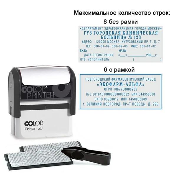 Платформа штампа позволяет набирать, а при необходимости оперативно менять, до 3 строк текста и оста...