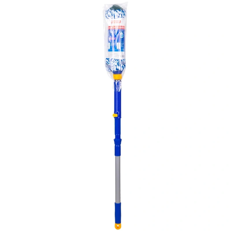 Способ применения швабры: нажмите на фиксатор, расположенный на пластиковой части рукоятки над веревочной насадкой, и опустите ручку вниз, намочите насадку, поднимите пластиковую часть рукоятки с фиксатором вверх, прокрутите рукоятку против часовой стрелки и отожмите насадку. Нажмите на фиксатор рукоятки, опустите насадку вниз, швабра готова к использованию. Насадка крепится к держателю швабры с помощью болта-шпильки. Для того чтобы сменить насадку, необходимо взяться за абразивную синюю вставку на швабре и открутить ее по резьбе и открепить хомут, который фиксирует насадку. Сменная насадка: 295496. Широкий ассортимент швабр OfficeClean - это прекрасный выбор для сухой и влажной уборки помещений, которые позволяют сэкономить время и усилия, затрачиваемые на ручную уборку
