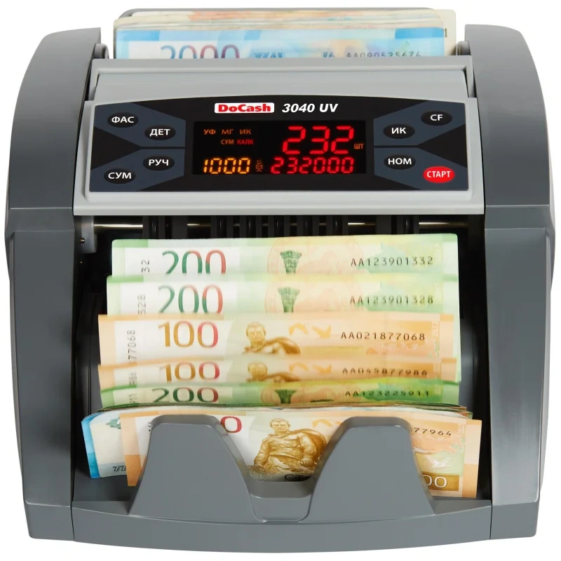 Счетчик банкнот Docash 3040 UV, до 1000 банкнот/мин, УФ детекция, фасовка
