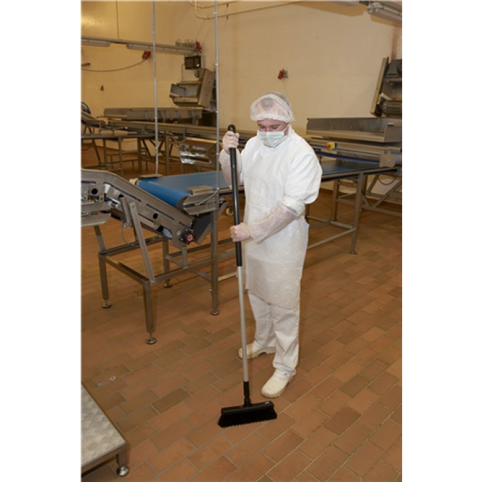 Эта щетка с прямым соединением ручки к колодке щетки и ворсом средней жесткости предназначена для удаления такого мусора, как бумага, овощи, рыба, кусочки мяса с оборудования, участков между оборудованием и из-под столов.
