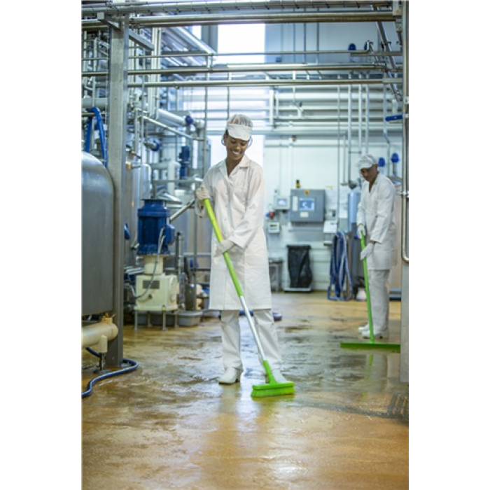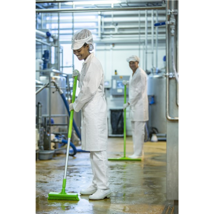 Щетка имеет жесткий ворс. Длина ворса идеально подходит для мытья любых типов покрытий полов: эпоксидного, кафельного, цементного и т.д. Хорошо вычищает грязь на неровных поверхностях.