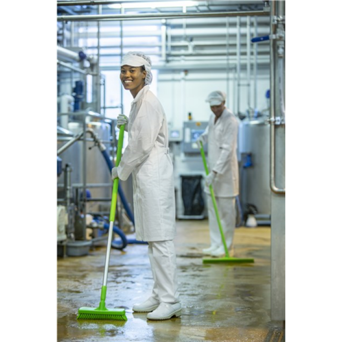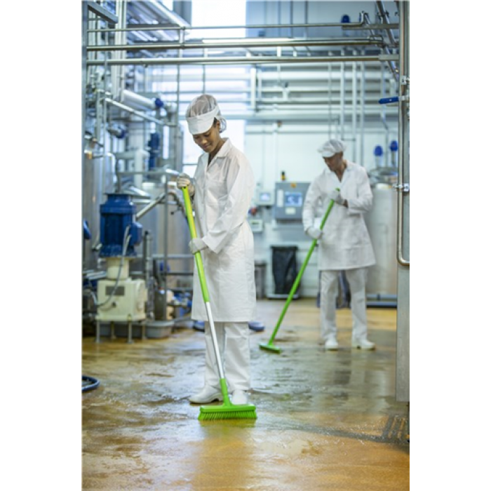 Щетка имеет жесткий ворс. Длина ворса идеально подходит для мытья любых типов покрытий полов: эпоксидного, кафельного, цементного и т.д. Хорошо вычищает грязь на неровных поверхностях.