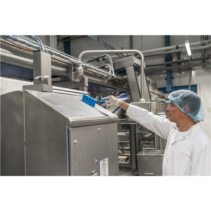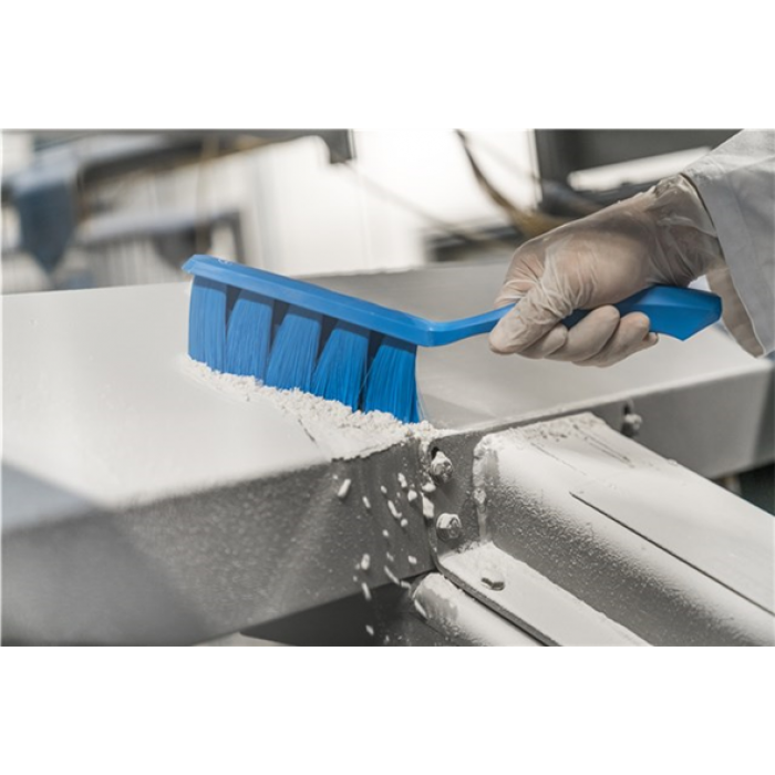 Щетка с мягким ворсом повышенной прочности ULTRA SAFE TECHNOLOGY. Эта щетка идеально подходит для удаления сухого мелкого мусора с нвейерных лент, поверхностей для подготовки продуктов, столов и другого оборудования, где высок риск загрязнения. Расположение ворса повышенной прочности обеспечивает эффективное удаление сухого мелкого мусора.