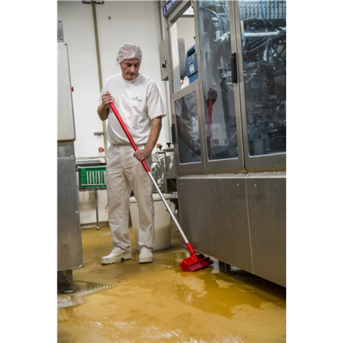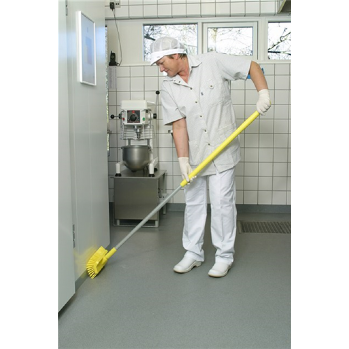Изогнутая колодка этой щетки предназначена для уборки вдоль стыка между полом и стеной, а также пола под оборудованием, т.к. угол наклона соединительной части позволяет пользоваться щеткой горизонтально. Эта щетка идеально подходит и для очистки сливов.