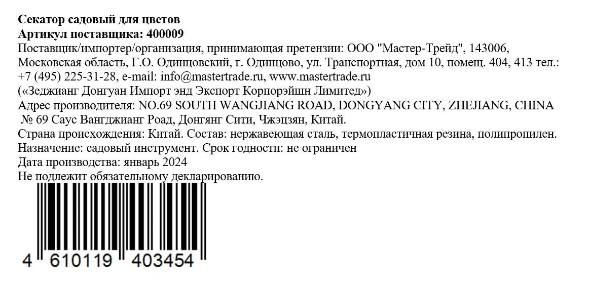 Имеет тонкие короткие лезвия из прочной углеродистой стали с высокоточной заточкой, позволяющей избежать разрывов стеблей и тонких веток. Ручки инструмента покрыты термопластичной резиной, не позволяющей ему скользить и выпадать из руки. Фиксатор закрытия расположен в нижней части рукоятей. Секатор садовый для цветов. Лезвие из нержавеющей стали, ручка из цинкового сплава, рукоятка из термопластичной резины и замок из полипропилена.