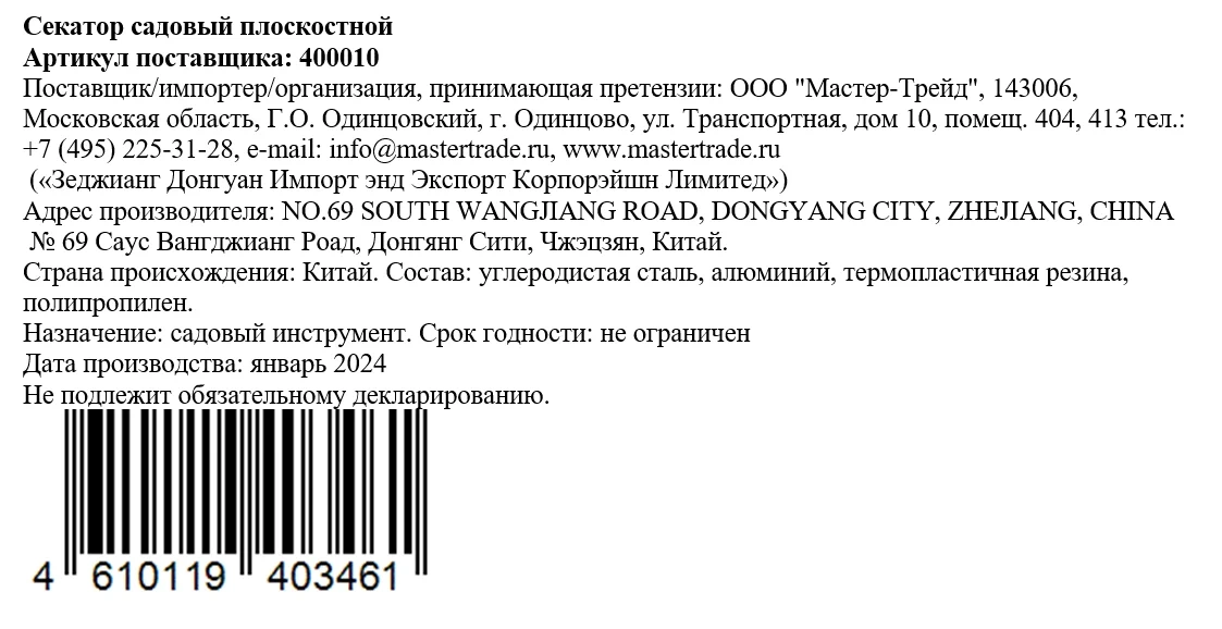 | Комплектация | секатор - 1 шт. |