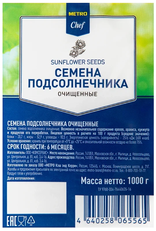 METRO Chef Семена подсолнечника очищенные сушеные, 1кг