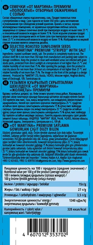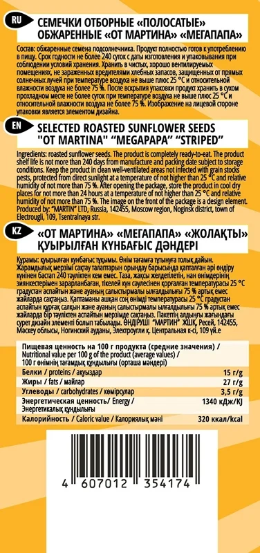 Семечки От Мартина мегапапа полосатые обжаренные, 200г