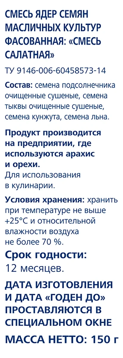 Семена Дары природы смесь для салата с кунжутом, 150г