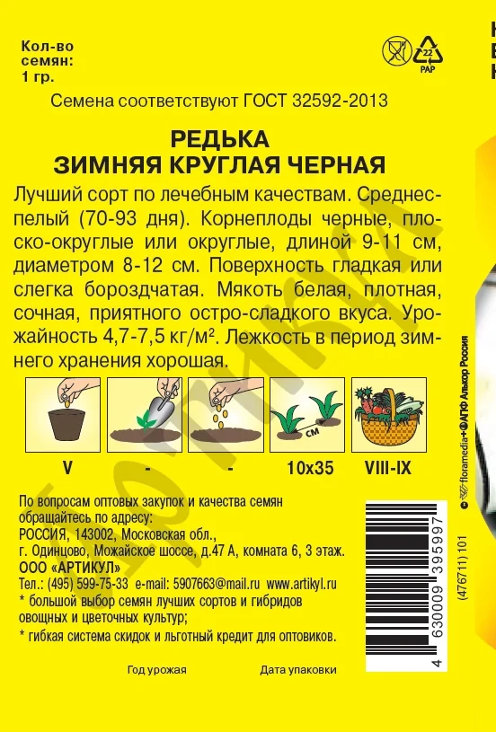 Семена Артикул Дисплей 35 эконом редька зимняя