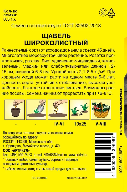 Семена Артикул Дисплей 37 эконом щавель широколистный