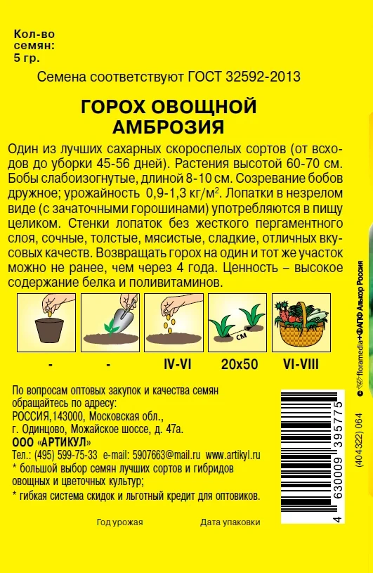 Семена Артикул Дисплей 39 эконом горох амброзия