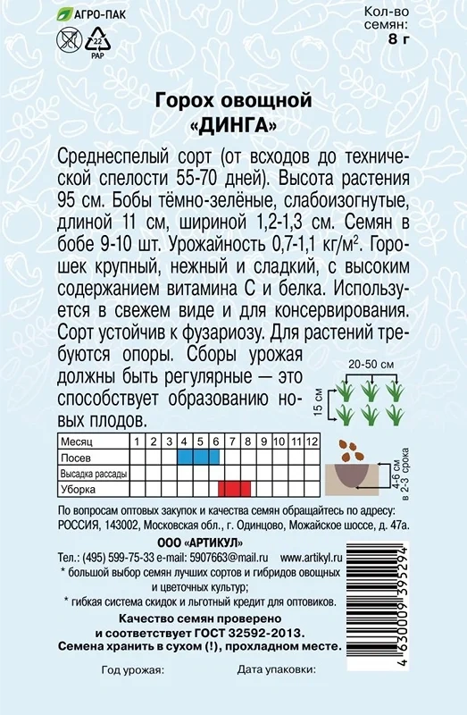 Семена Артикул Горох овощной Динга, 10г