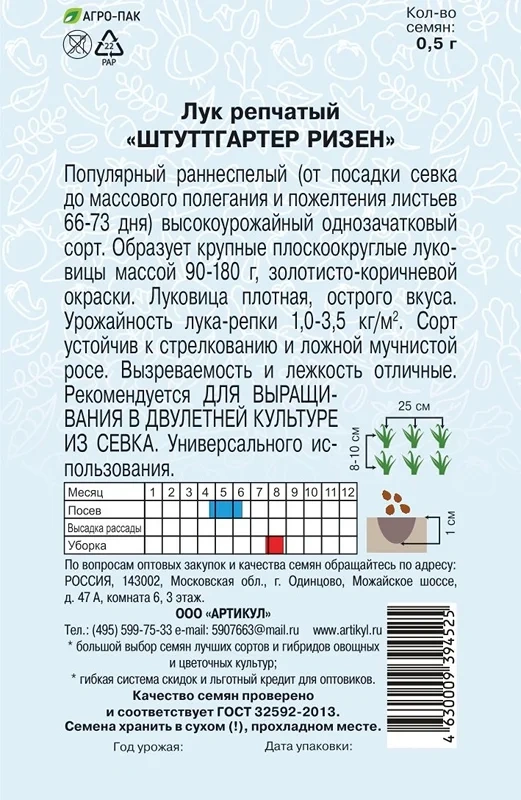 Семена Артикул Лук Репчатый Штуттгартер Ризен, 10г