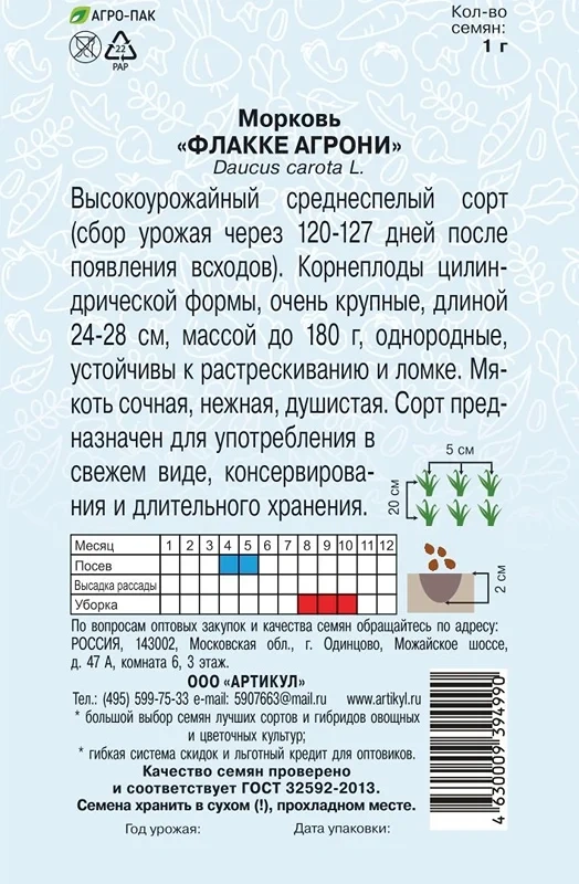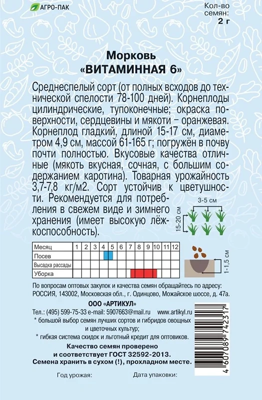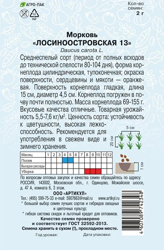 Семена Артикул Морковь Лосиноостровская 13, 10г