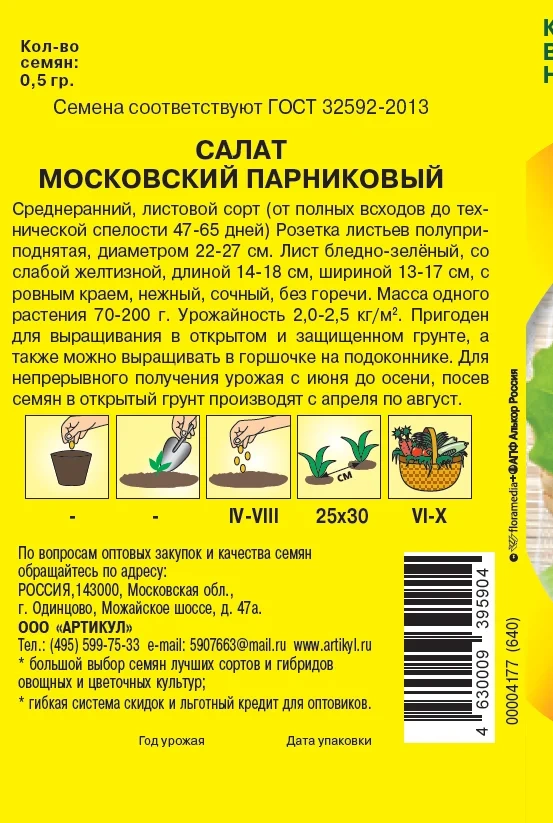 Семена Артикул Дисплей 36 эконом салат московский