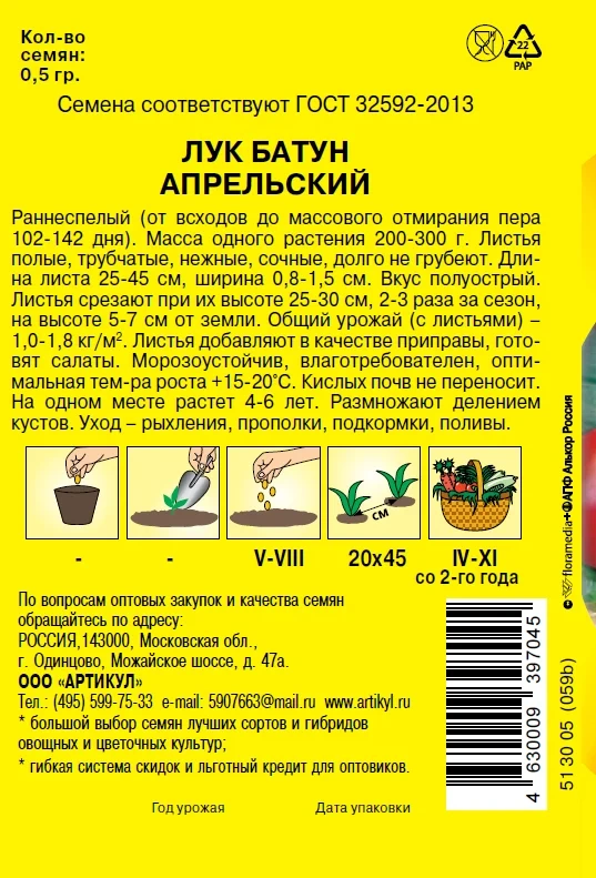 Семена Артикул Дисплей 37 эконом лук апрельский