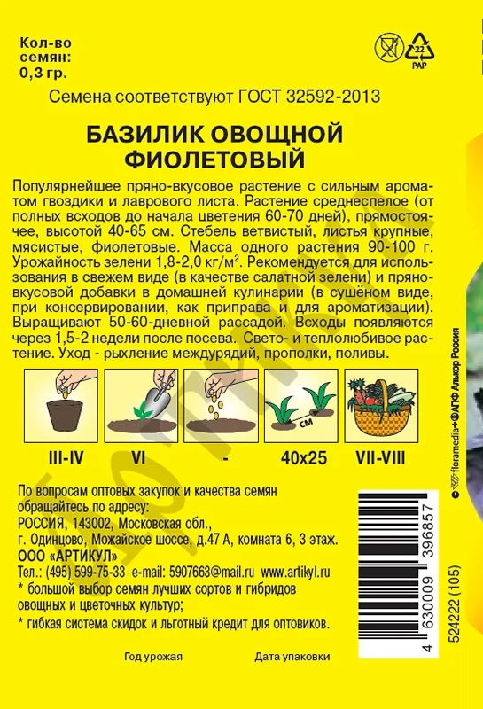 Семена Артикул Дисплей 39 эконом базилик фиолетовый