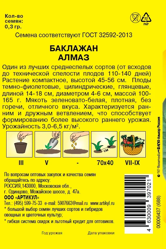 Семена Артикул Дисплей 38 эконом баклажан алмаз