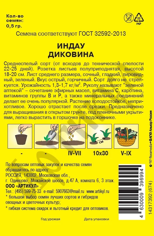 Семена Артикул Дисплей 39 эконом индау диковина