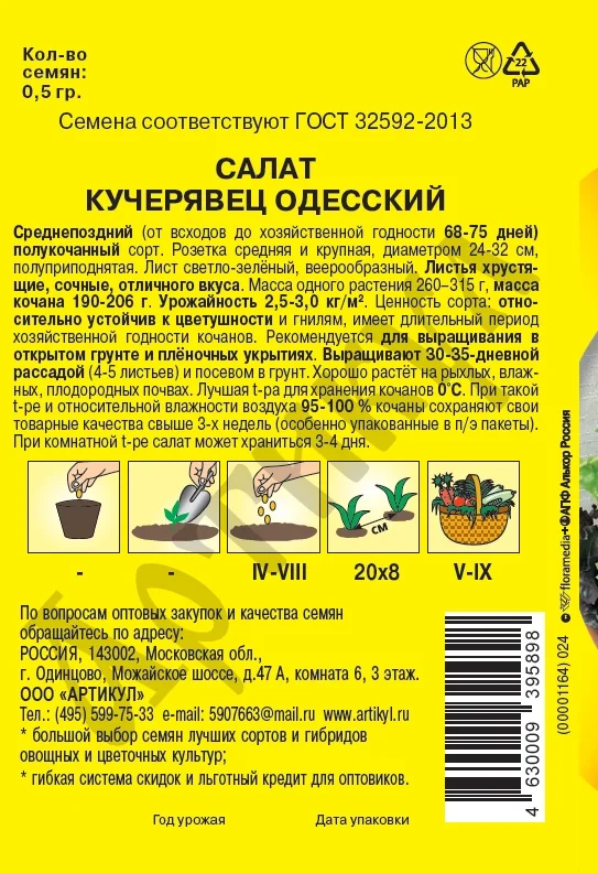 Семена Артикул Дисплей 36 эконом салат одесский