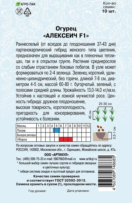 Семена Артикул Дисплей 33 эконом огурец конкурент