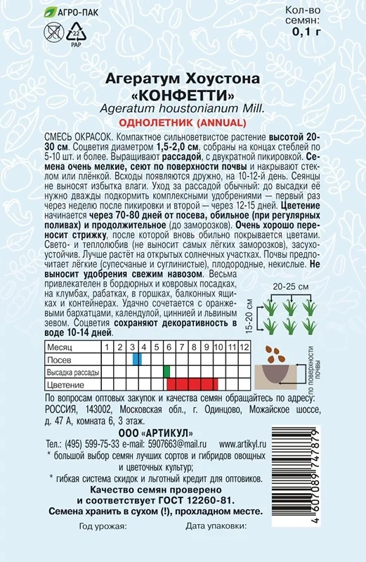 Семена Артикул Агератум Хоустона Конфетти, 10г
