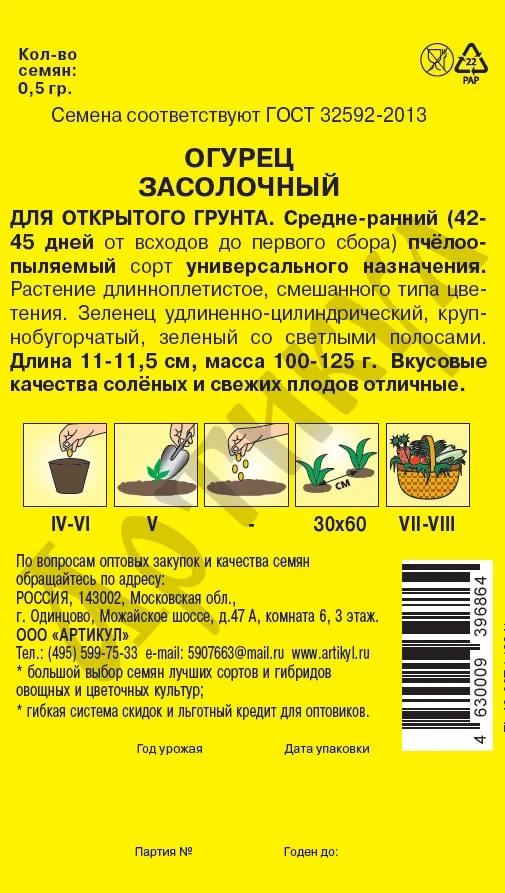 Семена Артикул Дисплей 33 эконом огурец засолочный