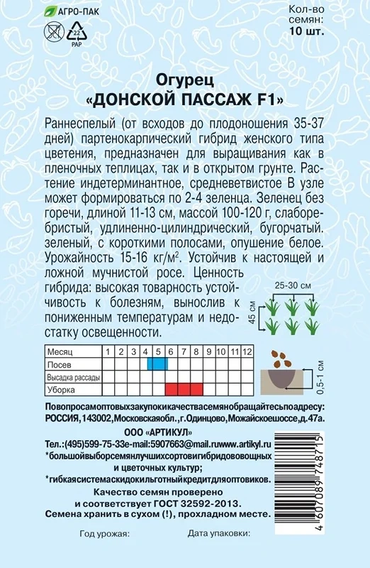 Семена Артикул Огурец Донской Пассаж F1, 2г