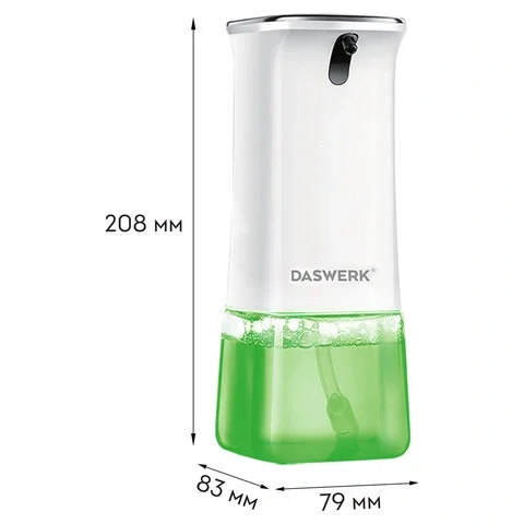 Модель оборудована инфракрасным сенсором, благодаря чему процесс мытья рук становится комфортным и максимально безопасным. Датчик реагирует на движение под носиком устройства, и дозатор сразу же выдаёт мыльную пену. Механизм вспенивания позволяет значительно сократить расход средства. На выходе он превращает мыло-пену в пенообразную смесь, подача которой производится в течение 0.25 секунд после поднесения рук.