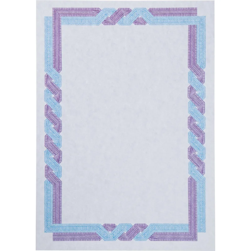Сертификат-бумага А4 Attache 50 шт/уп сине-голубая крученая рамка ID1 Сертификат-бумага предназначена для печати сертификатов, грамот и дипломов на любых принтерах. Изготавливается из офсетной бумаги. Формат А4, в пачке 50 листов, плотностью 120 г/кв.м, с рамкой сине-голубого цвета.