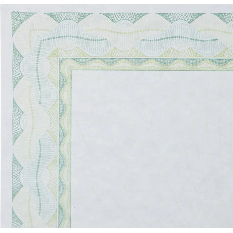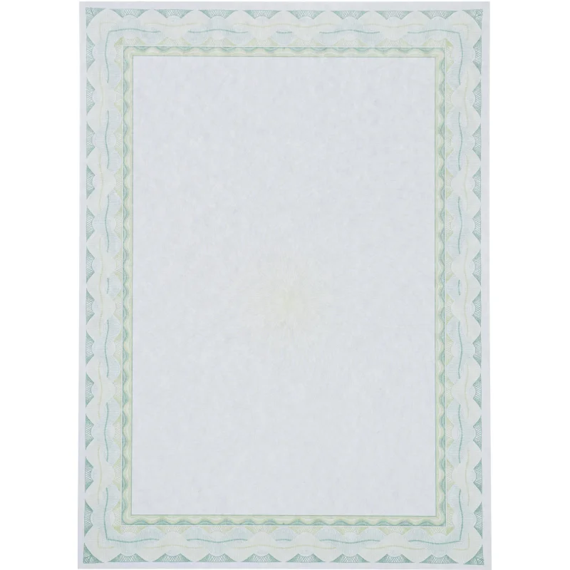 Сертификат-бумага А4 Attache 50 шт/уп зеленая рамка спираль ID6 Сертификат-бумага предназначена для печати сертификатов, грамот и дипломов на любых принтерах. Изготавливается из офсетной бумаги. Формат А4, в пачке 50 листов, плотностью 120 г/кв.м, с рамкой зеленого цвета.
