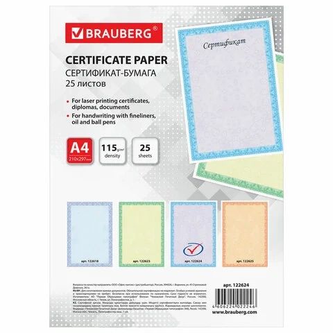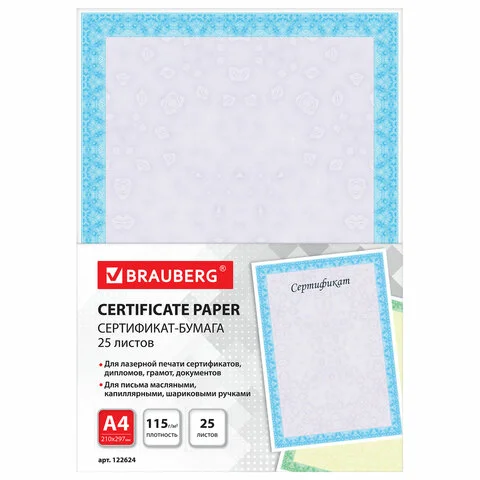 Сертификат-бумага Brauberg голубая сеточка, А4, 115г/м2, 25 листов