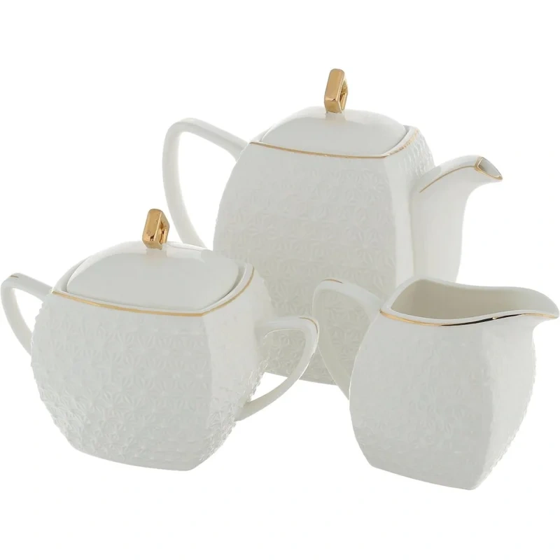 Изящный сервиз выделяется рельефным рисунком и квадратными формами. Объёмный декор добавляет посуде элегантность и подчёркивает её премиальное качество. Он гармонично сочетается с минималистичным дизайном, создавая интересную игру текстур.