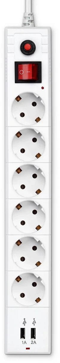 Фильтр сетевой Buro BU-SP1.8 USB 2A-B 6 розеток, 1,8 м оснащен шестью стандартными розетками 220 В, а также двумя портами USB с силой тока 1 и 2,1 А для подзарядки мобильных девайсов. Он предназначен для защиты устройств от перенапряжений и помех в электросети, обеспечивая безопасность и долговечность работы электроники. Отличается надежностью и простотой использования. Его главная задача – защитить компьютеры, телевизоры, зарядные устройства и другие от возможных повреждений и повышенного напряжения. Фильтр поглощает и нейтрализует помехи, позволяя электронике работать более стабильно и безопасно. Изготовлен из качественных материалов и имеет прочную конструкцию, обеспечивающую долгий срок службы. Розетки позволяют подключить несколько устройств одновременно, делая его удобным и функциональным. Для безопасной работы необходимо регулярно проверять фильтр на предмет повреждений и чистоты. Для удаления пыли можно использовать мягкую сухую ткань или щетку. Это отличный выбор для повседневного использования. Модель имеет выключатель со светодиодным индикатором.