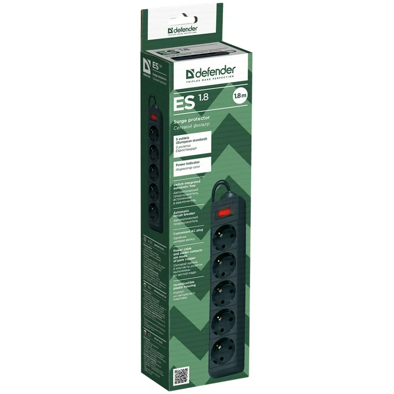 Сетевой фильтр Defender ES 5 розеток 1,8м, черный