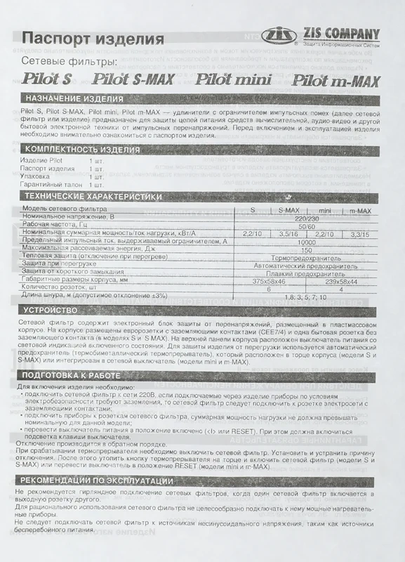 Pilot m-MAX защищает от импульсных помех, перегрузки и короткого замыкания.