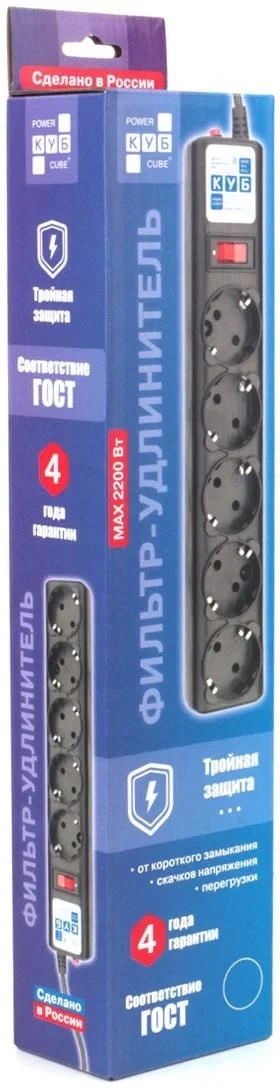 | Особенности | 5 розеток с заземлением. однополюсный выключатель со световой индикацией. автоматический, многоразов |
