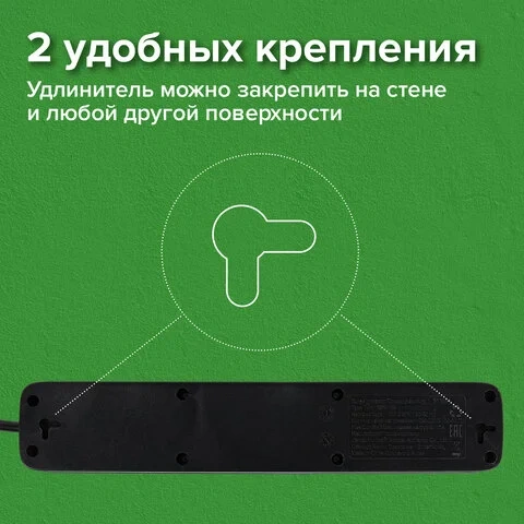 Имеет возможность крепления на стену. Количество розеток – 5. Каждая розетка оснащена заземляющими контактами и защитными шторками. Корпус выполнен из негорючего ABS-пластика. На корпусе расположен выключатель и автоматический предохранитель. Толщина жил кабеля – 3х1,0 мм, длина кабеля – 5,0 м. Материал жил кабеля - алюминий. Номинальная частота – 50 Гц, номинальное напряжение – 220 Вт, максимальный ток нагрузки – 10 А, суммарная мощность нагрузки – 2200 Вт.