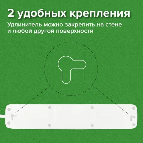 Имеет возможность крепления на стену. Количество розеток – 5. Каждая розетка оснащена заземляющими контактами и защитными шторками. Корпус выполнен из негорючего ABS-пластика. На корпусе расположены выключатель и автоматический предохранитель. Толщина жил кабеля – 3х1,0 мм, длина кабеля – 5,0 м. Материал жил кабеля – алюминий. Номинальная частота – 50 Гц, номинальное напряжение – 220 Вт, максимальный ток нагрузки – 10 А, суммарная мощность нагрузки – 2200 Вт.