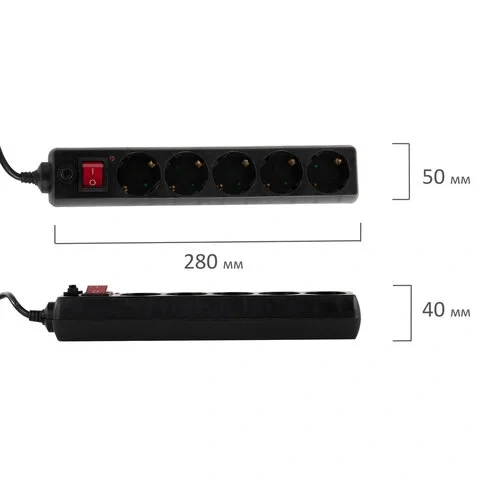 Количество розеток – 5. Каждая розетка оснащена заземляющими контактами Каждая розетка оснащена заземляющими контактами и защитными шторками. Корпус выполнен из негорючего ABS-пластика. На корпусе расположен выключатель и автоматический предохранитель. Толщина жил кабеля – 3х0,75 мм, длина кабеля – 5 м. Материал жил кабеля – медь. Номинальная частота – 50 Гц, номинальное напряжение – 220 Вт, максимальный ток нагрузки – 10 А, суммарная мощность нагрузки: 2200 Вт.