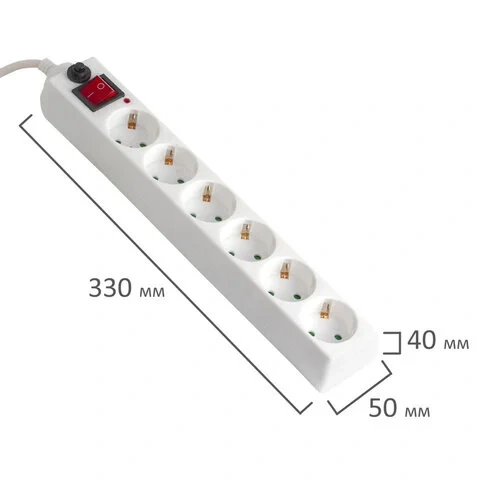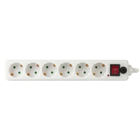 Имеет возможность крепления на стену. Количество розеток – 6. Каждая розетка оснащена заземляющими контактами и защитными шторками. Корпус выполнен из негорючего ABS-пластика. На корпусе расположен выключатель и автоматический предохранитель. Толщина жил кабеля – 3х0,75 мм, длина кабеля – 5 м. Материал жил кабеля – медь. Номинальная частота – 50 Гц, номинальное напряжение – 220 Вт, максимальный ток нагрузки – 10 А, суммарная мощность нагрузки – 2200 Вт.