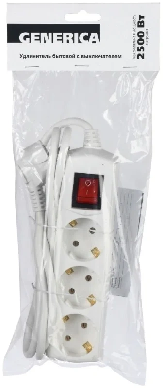 Сетевой удлинитель IEK У03В 5м (3 розетки) белый (пакет ПЭ)