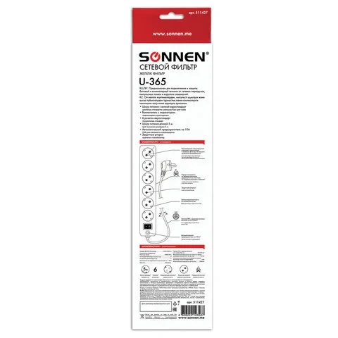 Сетевой фильтр Sonnen U-365 6 розеток, 5м, белый, с заземлением