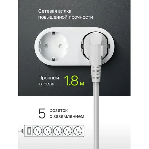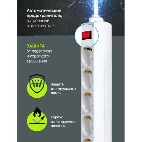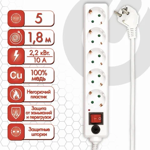 Сетевой фильтр Sonnen SPW-185 5 розеток, 1.8м, с заземлением, выключатель